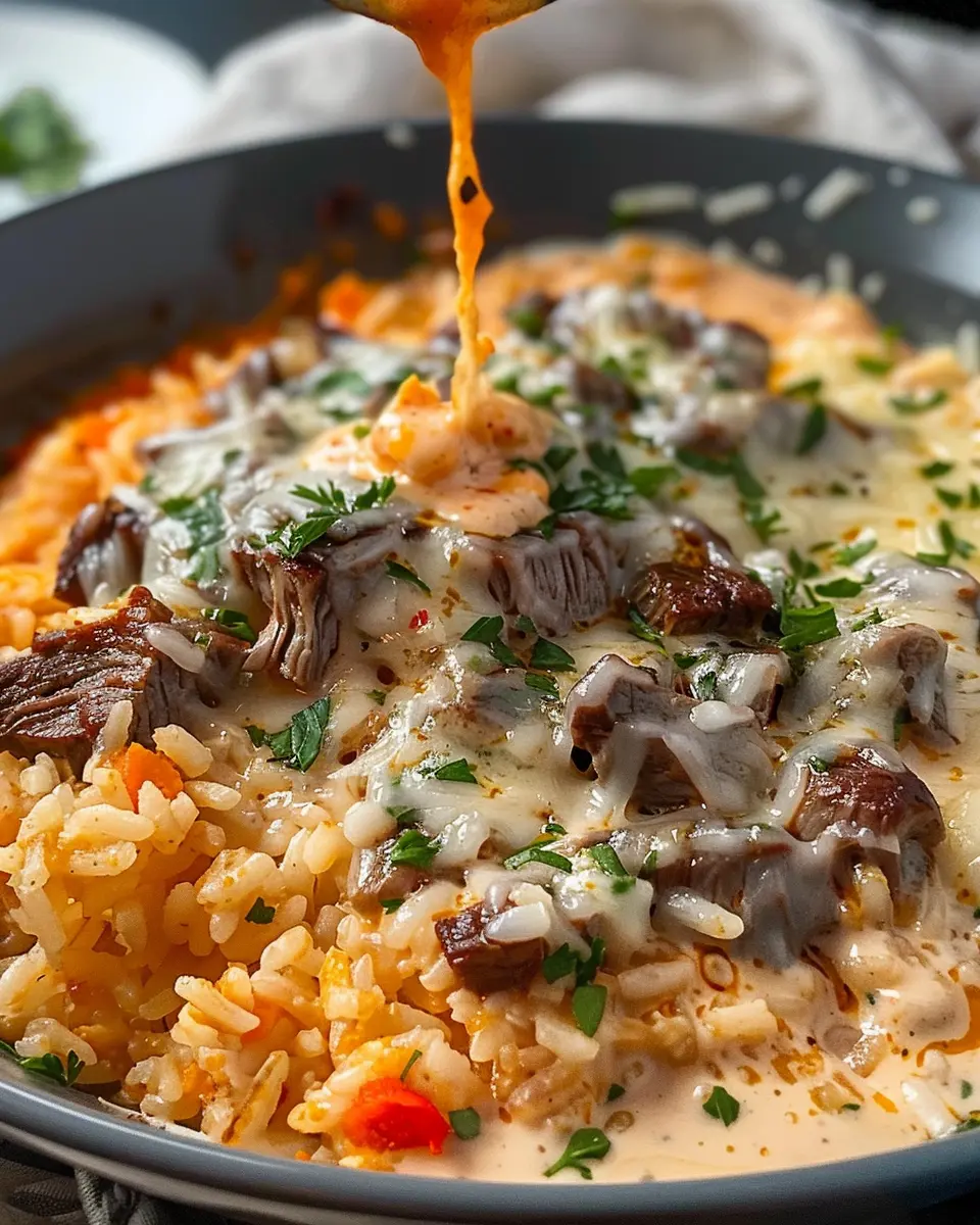 PrintSteak Queso Rice: A Flavorful and Easy Recipe for Food Lovers