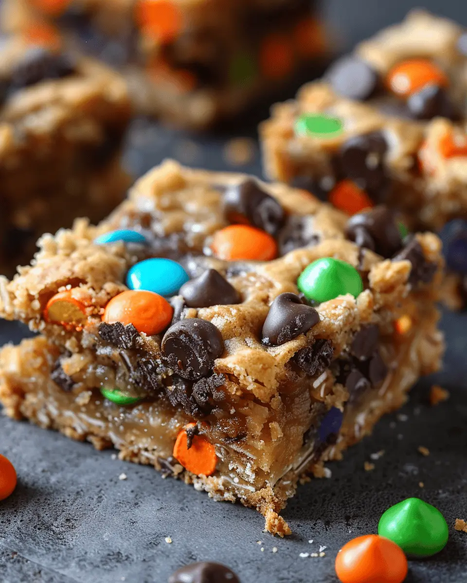 Indulge in the perfect blend of fun and flavor with these Monster Mash Cookie Bars. A delightful treat that brings joy to any occasion!