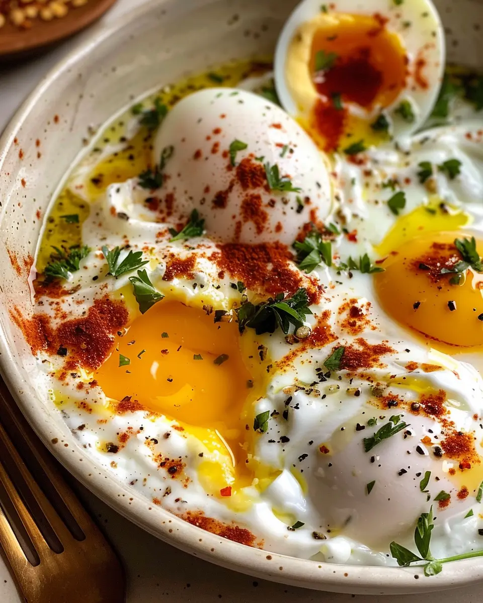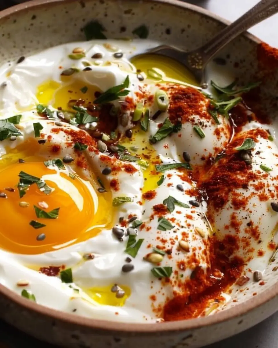 PrintTurkish Eggs: Indulgent Recipe with Creamy Yogurt & Butter Sauce