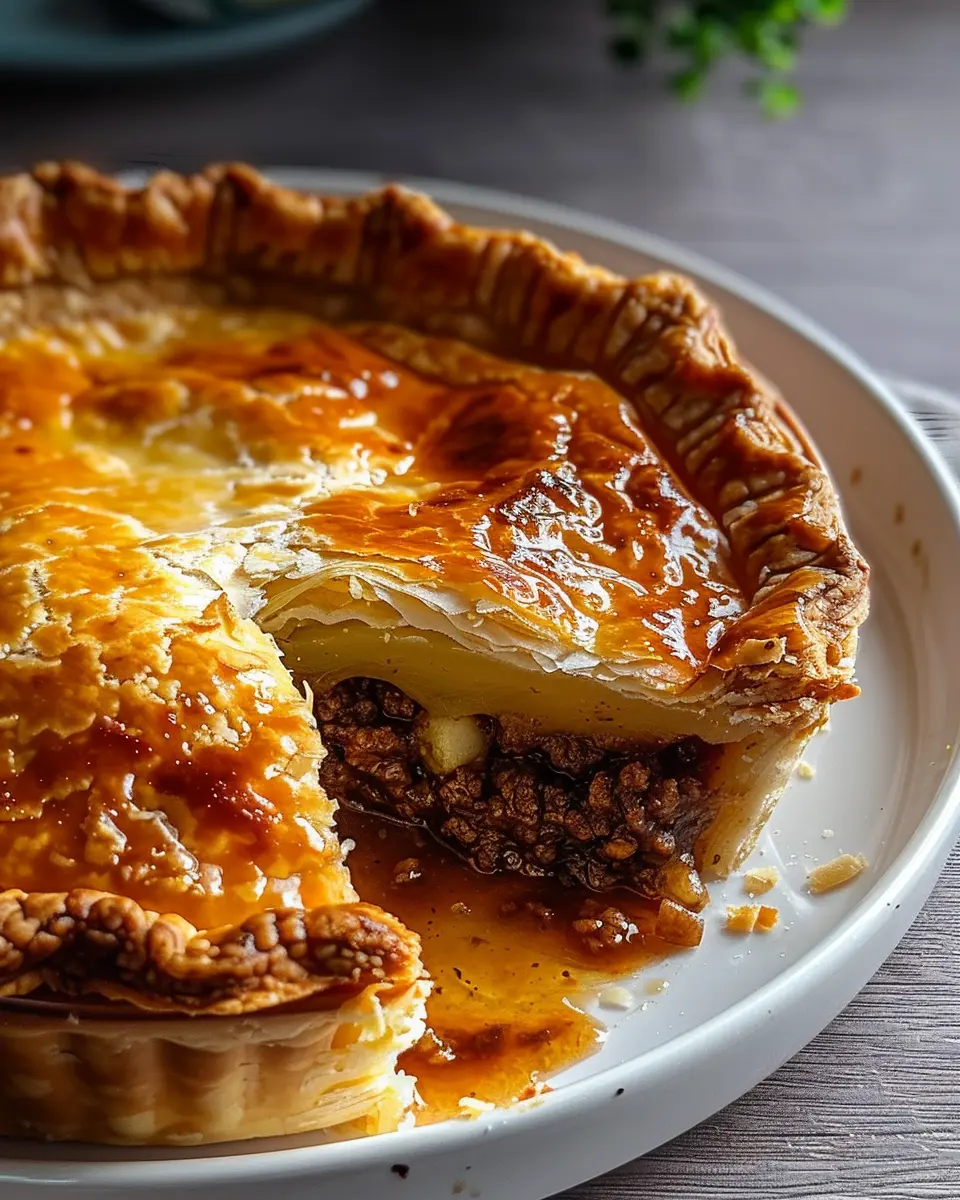 Fresh garden peas or a bright salad can also balance the richness of the pie, adding a burst of color and freshness. If you’re looking for a beverage to complement your meal, why not try a sparkling apple juice? Its sweetness pairs wonderfully with the pie’s hearty flavors.